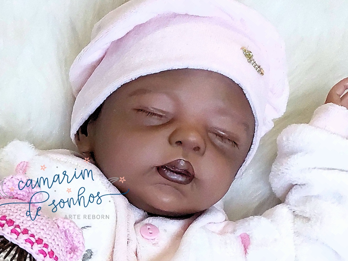 Bebê Reborn Meagan original com certificado, rara. Pernas inteiras e braços 3/4, corpo em tecido extra macio. Cabelos em mohair implantados fio a fio. Aproximadamente 52cm.